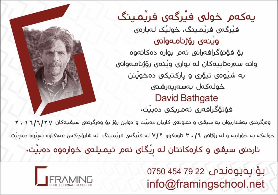 فێرگەی فرێمینگ بۆ وێنەی رۆژنامەوانی خولێكی وێنەی رۆژنامەوانیكردەوە كە فۆتۆگرافەری ئەمریكایی دەیڤید باسگێت خولەكەی دەوتەوە.